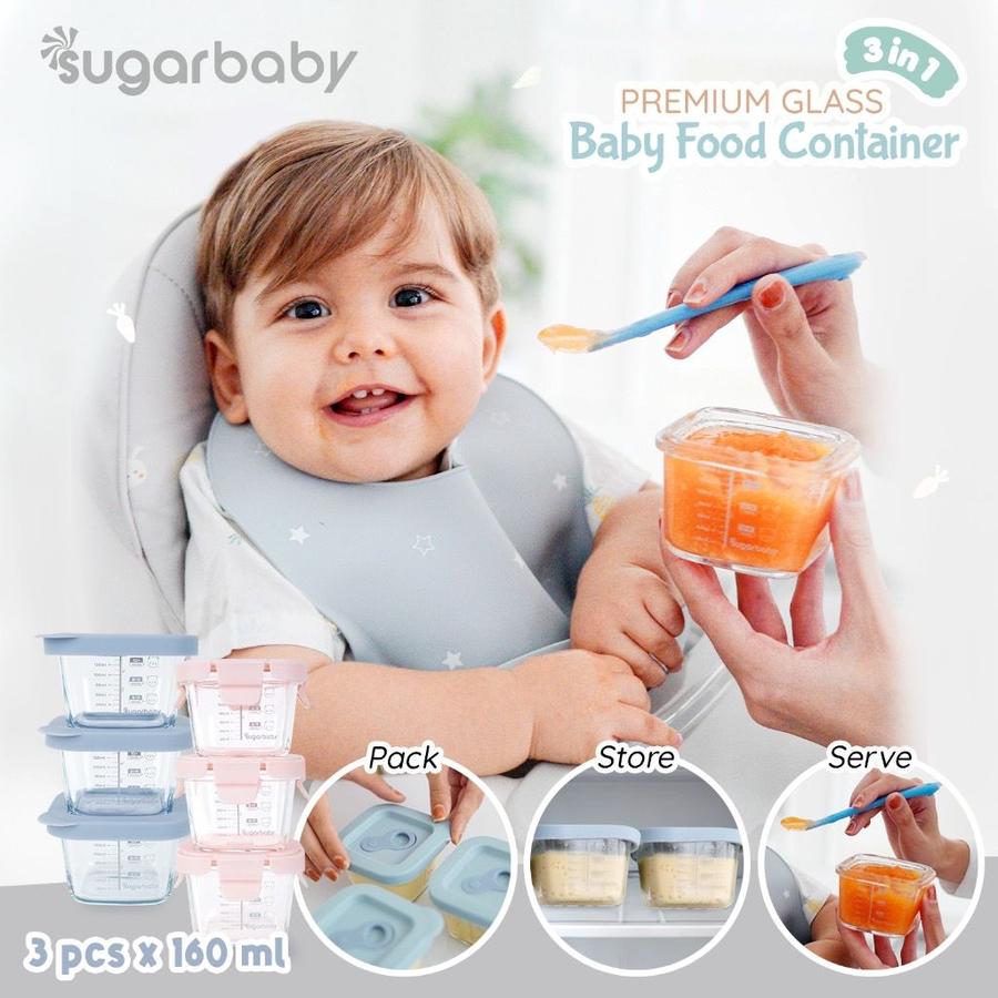 Sugar Baby Premium Glass Jar Baby Food Container hadir dalam dua varian tutup: Silicone Lid dan Plastic Lid (PP). Terbuat dari kaca borosilikat berkualitas tinggi, wadah ini dirancang khusus untuk menyimpan dan menghangatkan MPASI dengan aman, tahan suhu ekstrem, serta bebas bahan berbahaya.