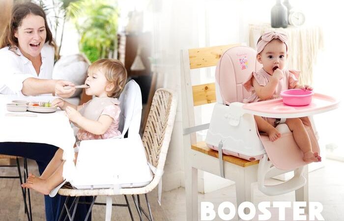 - Booster Seat: Kursi tambahan yang berfungsi untuk meninggikan posisi duduk anak, biasanya digunakan agar anak dapat sejajar dengan meja makan keluarga.