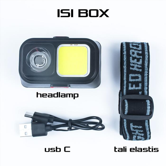 | Kelengkapan Paket | 1x Headlamp, 1x Kabel Charger USB Type-C, 1x Ikat Kepala. |