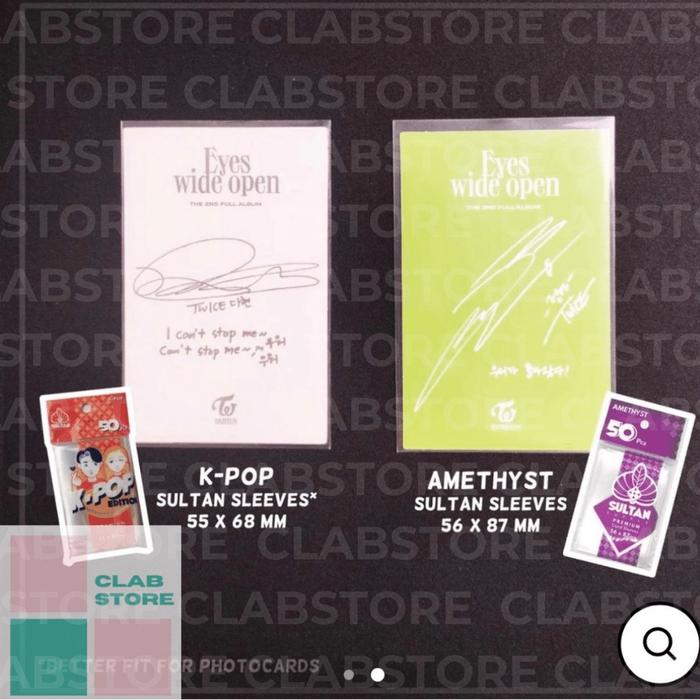 | Amethyst | 56 x 87 | Photocard Kpop, lapisan pertama double sleeve |