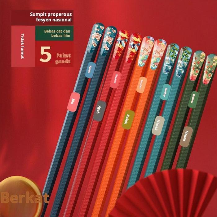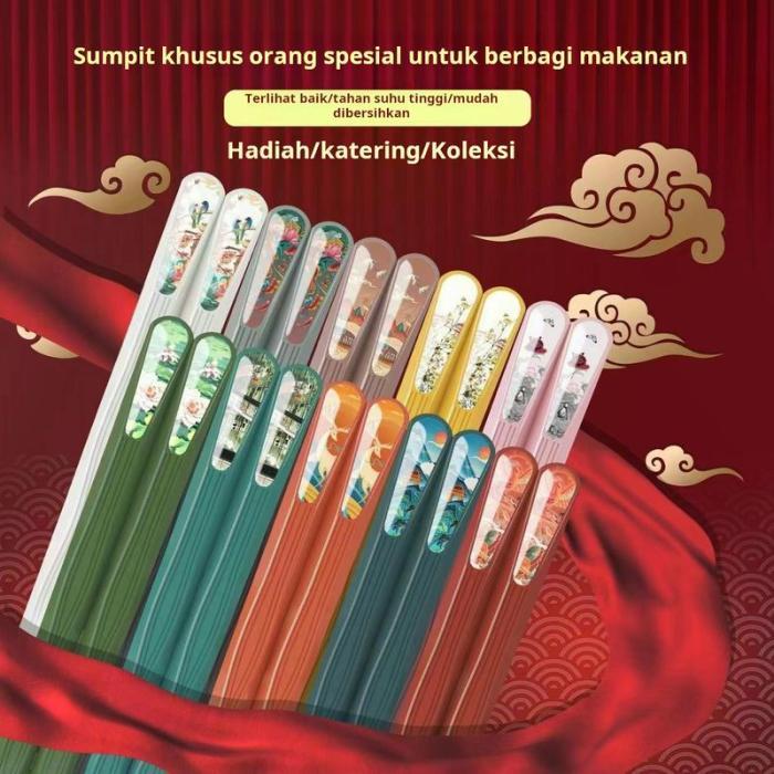 | Material Paduan Berkualitas | Terbuat dari bahan PET alloy dan fiberglass yang bebas BPA, menjamin keamanan untuk seluruh keluarga dan ketahanan yang lebih baik dibandingkan sumpit kayu atau bambu. |