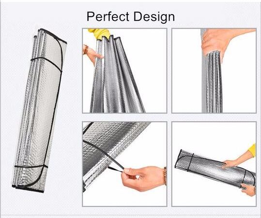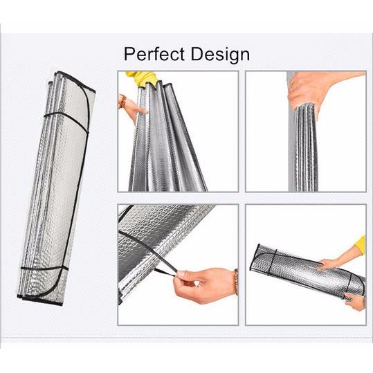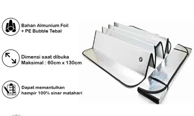 - Perlindungan Maksimal: Lembaran aluminium berkualitas memantulkan hingga hampir 100% sinar matahari, menjaga dashboard dan jok mobil dari panas berlebih sehingga tidak cepat aus dan retak.