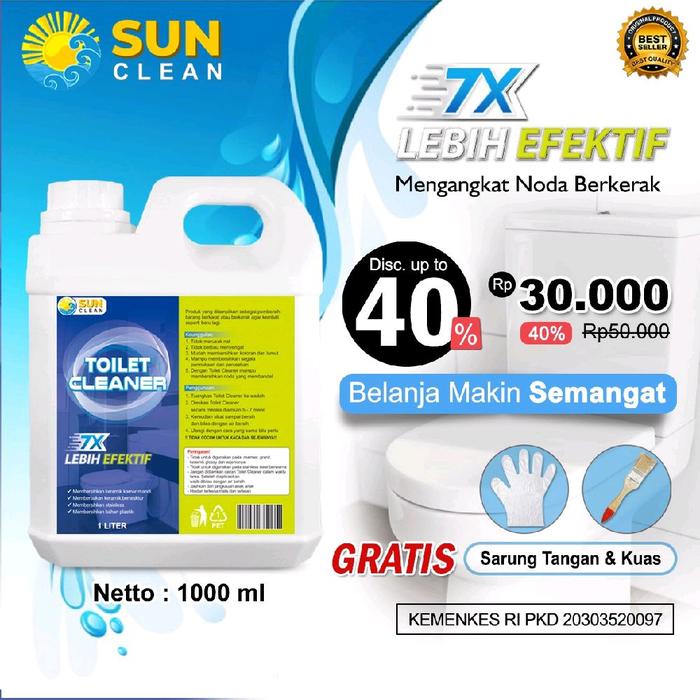 Dengan formula pembersih cair yang kuat, produk ini telah terbukti 7 kali lebih efektif menghilangkan noda membandel dibandingkan produk sejenis. Sun Clean tidak hanya membersihkan permukaan, tetapi juga membasmi kotoran yang menempel tanpa perlu menggosok berlebihan.