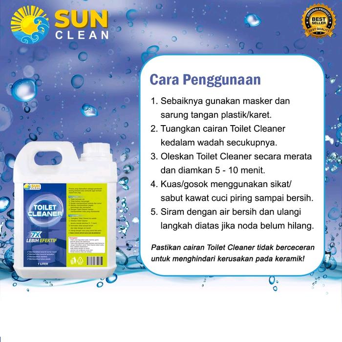 Hadapi noda toilet, keran, wastafel, shower, ember, dan gayung yang sulit dibersihkan? Sun Clean Toilet Cleaner adalah solusi ampuh yang dirancang khusus untuk mengatasi masalah kebersihan rumah Anda.