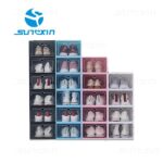 Fitur UtamaTransparan, Sistem bukaan tarik, Lubang ventilasi, Desain stackable (dapat disusun horizontal), Kokoh dan tidak lemas, Muat untuk berbagai jenis sepatu