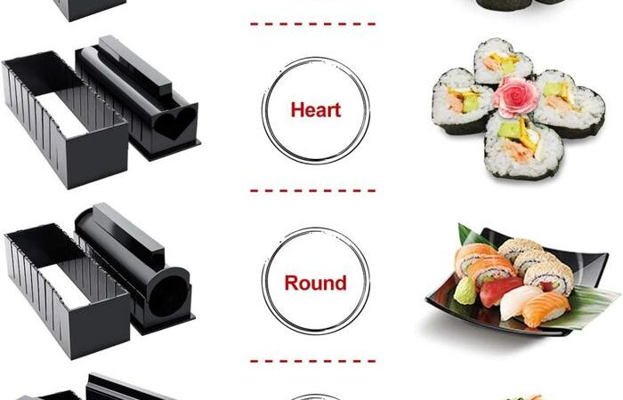 | Variasi Bentuk | Mencetak sushi dalam bentuk kotak, persegi panjang, bulat, hati, dan segitiga. |