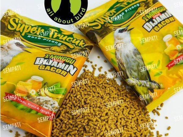 | Kandungan Utama | Sari pisang, kroto, jangkrik, madu, minyak ikan, susu, telur, serta vitamin dan mineral lengkap (A, B2, B6, B12, D3, E, K3, C). |