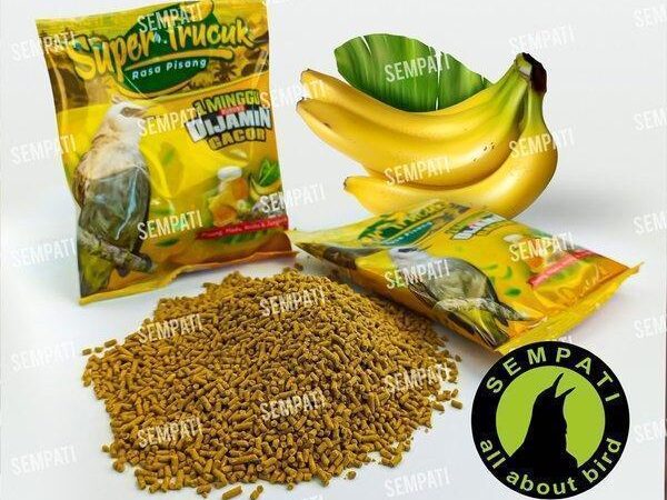 | Jenis Produk | Pakan burung (voer) dengan rasa pisang, diformulasikan khusus untuk burung pemakan buah. |