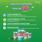 Kamar MandiDisinfeksi shower, kloset, kran air, dan saluran; menghilangkan bau tidak sedap dan mencegah tumbuhnya jamur.