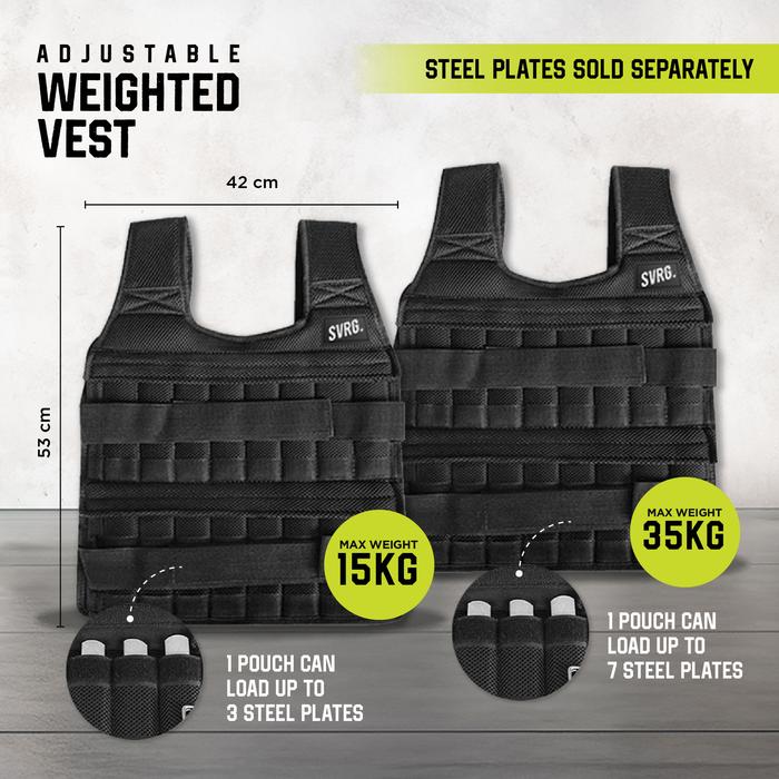 | Weighted Vest | 15 kg / 35 kg | 32 kantong | 75 / 175 plates |