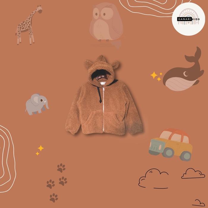 | Model | Hoodie dengan zipper depan + motif bear, desain unisex (cocok untuk anak laki & perempuan) |