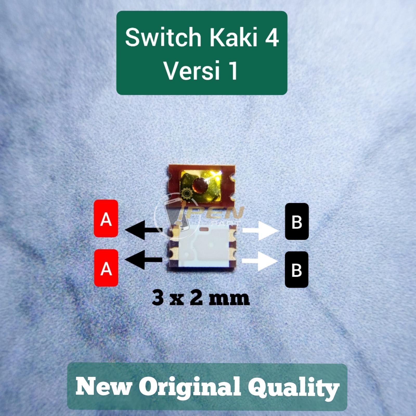 - Switch Tombol On/Off 4 Kaki: Komponen elektronik kecil yang berfungsi sebagai tombol power atau volume pada ponsel, memiliki empat titik solder (kaki) untuk menghubungkannya ke papan utama (motherboard) perangkat.