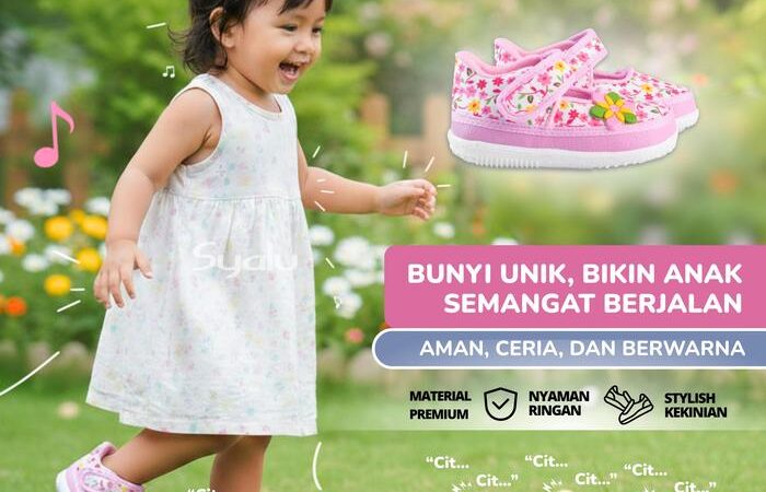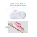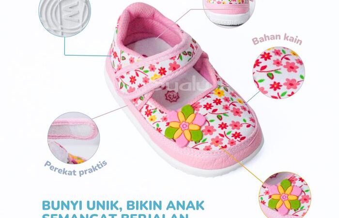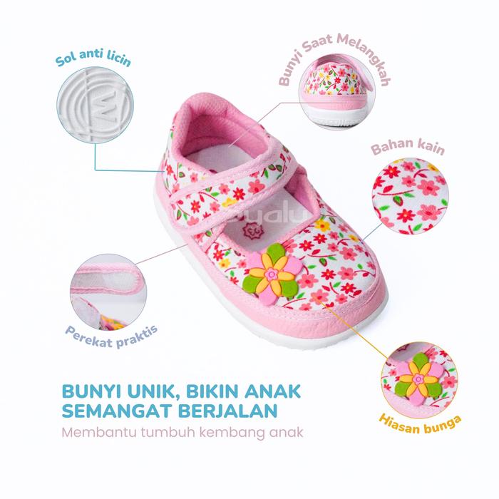 Solnya dirancang anti-slip (tidak licin) untuk memberikan traksi terbaik, melindungi buah hati Anda dari terpeleset. Desainnya yang ringan tidak membebani kaki mungilnya. Sepatu ini juga menghasilkan bunyi “cit-cit” yang lucu di setiap langkah, menambah semangatnya belajar berjalan dan membuatnya tersenyum.