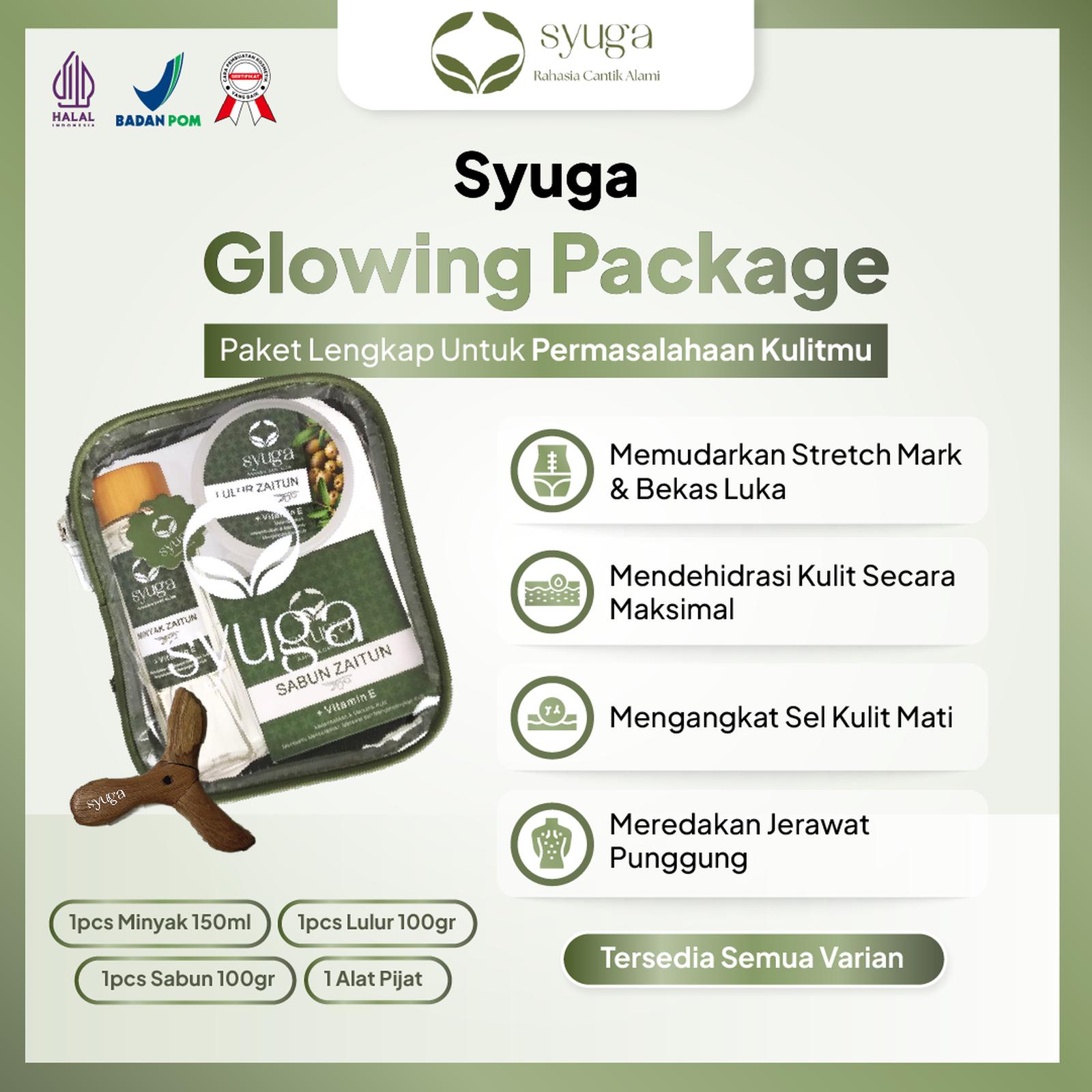 Raih kulit bercahaya dan rambut sehat dengan satu paket lengkap! Syuga Glowing Package menghadirkan rangkaian produk berbahan dasar minyak alami pilihan—Zaitun, VCO, Argan, dan Jojoba—yang diformulasikan khusus untuk memberikan perawatan maksimal.