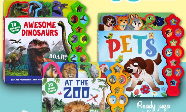 • Sound Button: Tombol yang terintegrasi pada buku; ketika ditekan akan mengeluarkan suara sesuai dengan gambar atau konten di halaman tersebut.