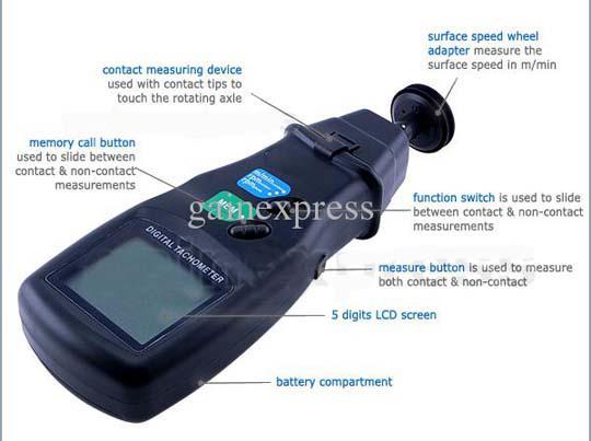 • Tachometer: Alat pengukur kecepatan rotasi (RPM) suatu benda.