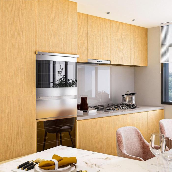 Dengan lebar tetap 120cm, produk ini sangat cocok untuk melapisi berbagai permukaan seperti furniture lama, meja dapur, lemari, daun pintu, hingga dinding dan partisi. Keunggulannya antara lain tahan terhadap air, garam, debu, dan panas, serta sangat mudah dibersihkan hanya dengan lap lembab, membuatnya sempurna untuk area dapur dan ruang keluarga.