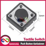Tingkatkan pengalaman prototyping di breadboard atau memperkuat panel project dengan tactile switch berukuran besar ini. Ukurannya yang 12x12mm membuatnya sangat mudah dan nyaman untuk ditekan, mengurangi kesalahan input dan cocok untuk berbagai aplikasi elektronik, mulai dari board Arduino, Raspberry Pi, hingga keyboard mekanik custom.