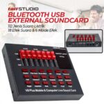 Soundcard TaffSTUDIO V8 Plus dirancang untuk enhancment audio real-time di live streaming (YouTube, Twitch), podcast, atau siaran radio. Dukung kreativitas Anda dengan efek suara instan (tekan tombol) atau kustomisasi via knob. Material metal menjamin durability.