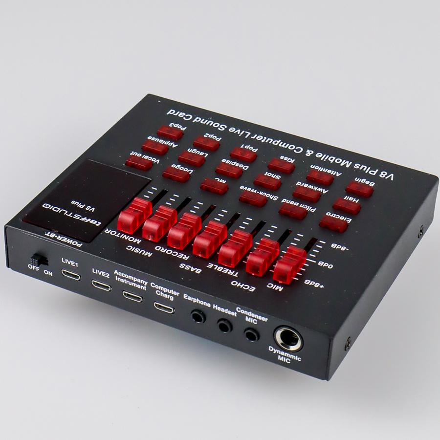 Soundcard TaffSTUDIO V8 Plus dirancang untuk enhancment audio real-time di live streaming (YouTube, Twitch), podcast, atau siaran radio. Dukung kreativitas Anda dengan efek suara instan (tekan tombol) atau kustomisasi via knob. Material metal menjamin durability.
