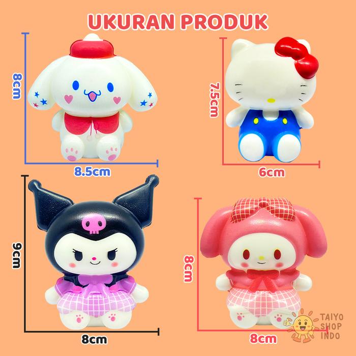 Warnai hari si kecil dengan koleksi squishy karakter Sanrio yang menggemaskan! Mainan ini terbuat dari bahan silikon premium yang sangat kenyal, lembut, dan aman. Setiap remasan akan kembali ke bentuk semula, menjadikannya mainan sensorik yang sempurna untuk menghilangkan rasa bosan dan melepas stres. Tersedia dalam pilihan karakter favorit: Cinnamoroll, Hello Kitty, Kuromi, dan My Melody.