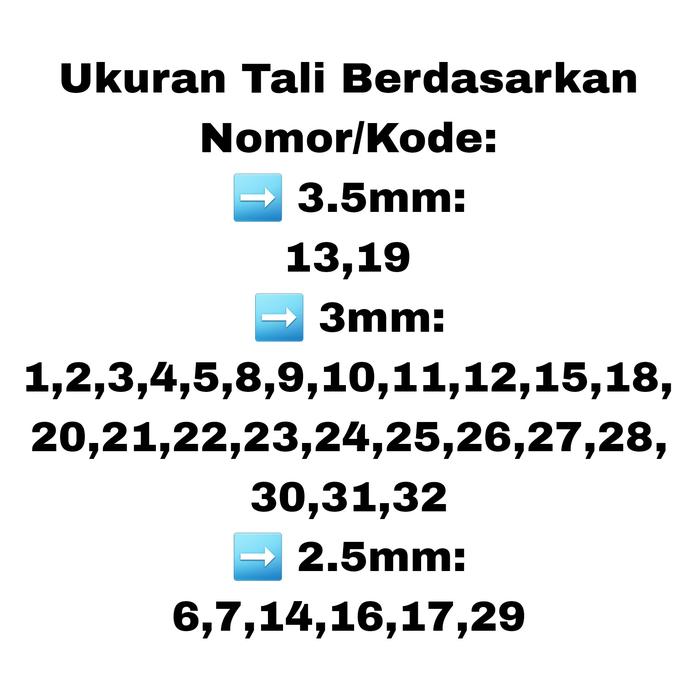 | Diameter Tali | 2.5mm – 3.5mm (Fleksibel dan Nyaman) |