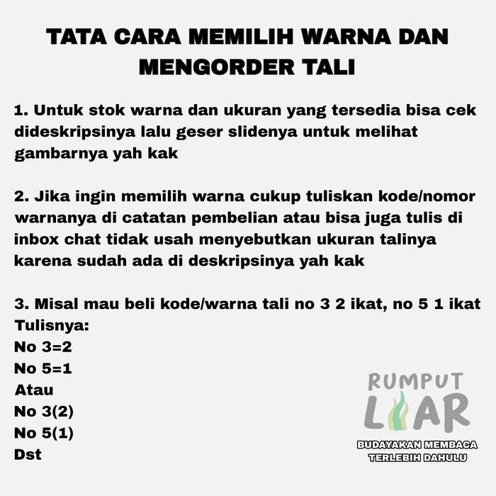 Tali elastis ini merupakan pilihan ideal untuk berbagai keperluan praktis dan proyek kreatif Anda. Dengan kelenturan dan daya tahannya, tali ini cocok digunakan sebagai tali frame tenda, pengikat rambut, tali gelang, kalung, tali masker, dan banyak lagi. Material garment best quality menjamin kelenturan maksimal dan ketahanan yang baik untuk penggunaan berulang kali.
