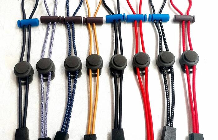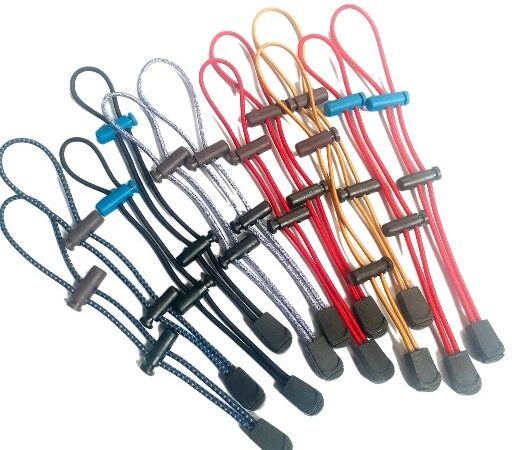 Stopper Cord: Pengait atau pengunci yang terbuat dari plastik atau logam pada ujung tali, berfungsi untuk mengencangkan dan mengunci tali agar tidak mudah lepas.