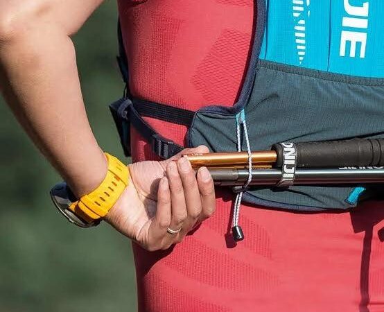 Trekking Pole: Tongkat pendakian yang digunakan untuk memberikan kestabilan dan mengurangi tekanan pada lutut saat berjalan di medan yang tidak rata.
