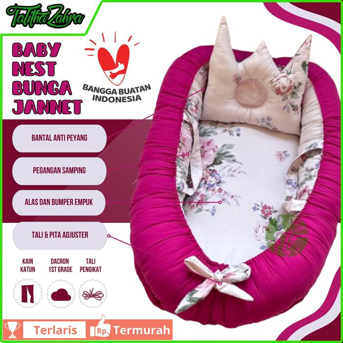 Terbuat dari bahan katun lembut yang nyaman untuk kulit bayi dan dilengkapi dengan isian silikon yang empuk serta stabil. Baby nest ini memiliki dua sisi yang dapat digunakan dan mudah dicuci, menjadikannya praktis dan higienis. Selain itu, produk ini dapat diletakkan di stroller atau di tempat tidur orang tua untuk menjaga bayi tetap aman selama tidur.