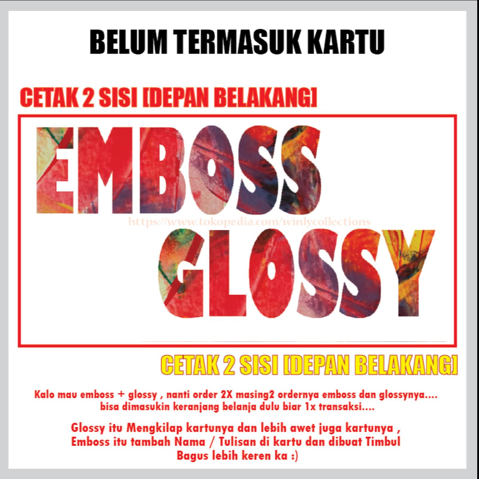 - Emboss: Teknik untuk menciptakan efek timbul atau relief pada permukaan kartu, biasanya untuk nama atau huruf, sehingga dapat dirasakan dengan sentuhan.