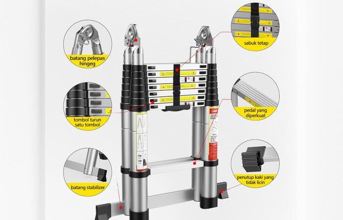 Tingkatkan efisiensi pekerjaan Anda dengan tangga lipat aluminium teleskopik berkualitas tinggi. Tangga ini dirancang khusus untuk menjangkau area yang tinggi dengan stabil dan aman. Dengan sistem double telescopic, setiap bagian dapat diperpanjang secara independen, memberikan fleksibilitas tinggi untuk berbagai kebutuhan, mulai dari perbaikan rumah, pencatatan, hingga pemasangan dekorasi.