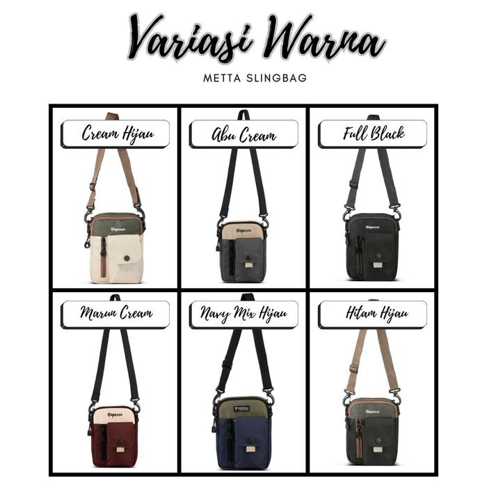 SLINGBAG METTACordura14,5 cm x 6 cm x 20 cmFull Hitam, Full Hijau, Abu Cream, Maroon Cream, Hijau Cream, Cream Hijau, Hitam Hijau, Navy Hijau, Navy Hitam