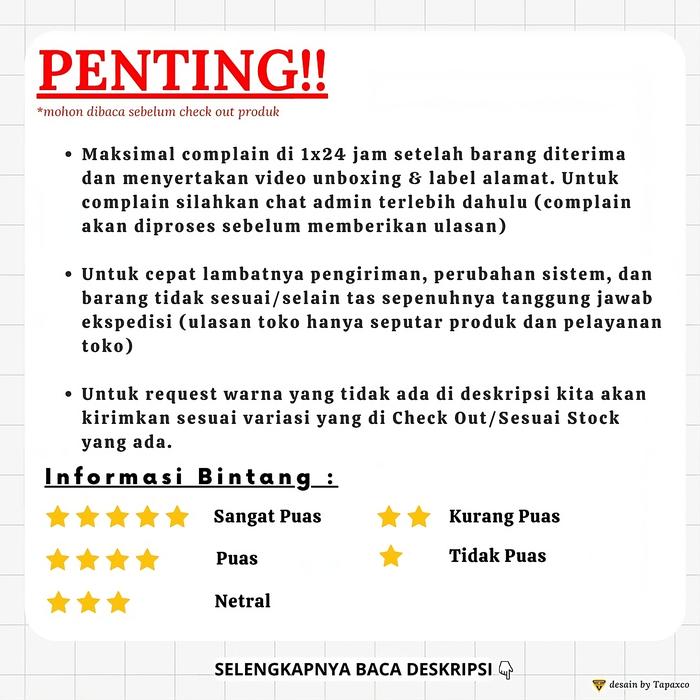 Pastikan untuk mengisi data pengiriman dengan lengkap dan benar: Nama Jelas, Alamat Lengkap (termasuk No. Rumah, RT/RW, Kecamatan, Kabupaten/Kota), patokan rumah, dan Nomor HP yang aktif. Informasi pesanan tidak dapat diubah setelah diproses.