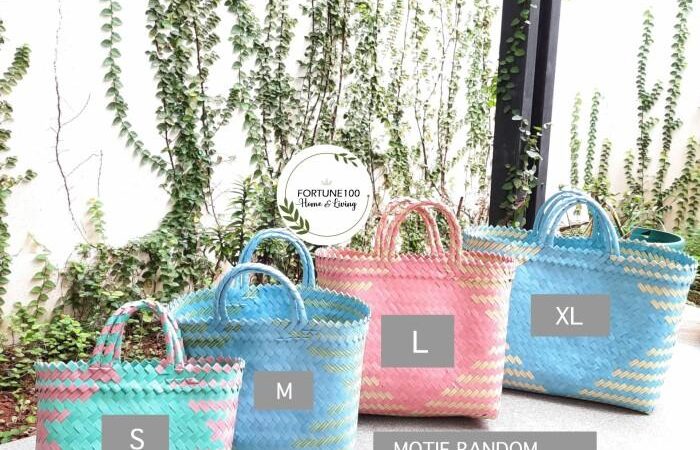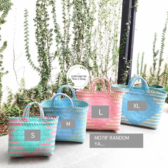 Tas anyaman plastik dengan motif kombinasi yang unik dan harga ekonomis. Cocok untuk berbagai kebutuhan, seperti: