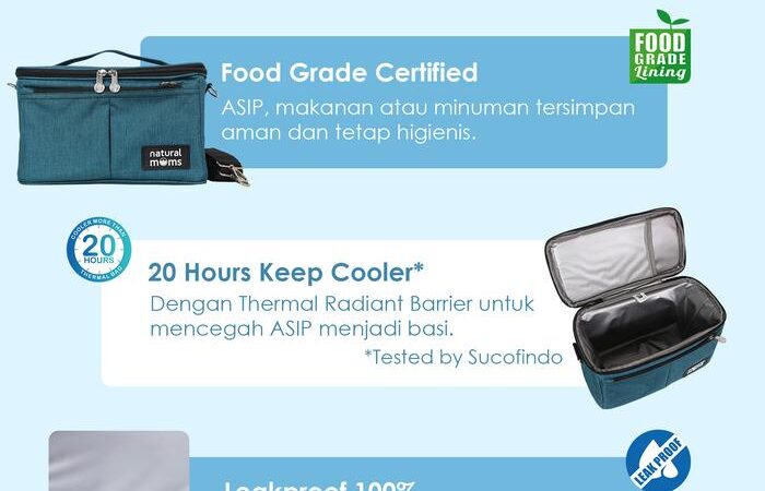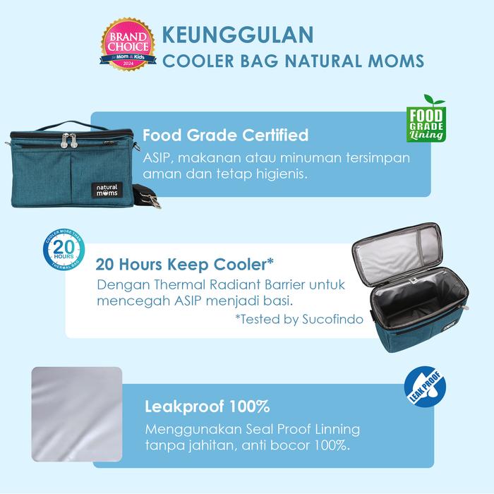 Cooler Bag Natural Moms adalah pilihan ideal bagi ibu modern yang membutuhkan solusi aman dan tahan lama untuk menyimpan ASI Perah (ASIP) selama beraktivitas di luar rumah. Tas ini telah tersertifikasi Food Grade, menjamin keamanan dan kebersihan ASI atau makanan yang disimpan. Dengan ketahanan dingin hingga 20 jam (menggunakan 2 ice gel 500gr), kualitas ASIP Anda akan tetap terjaga tanpa risiko basi.