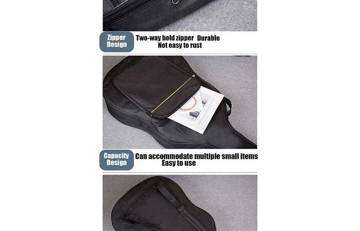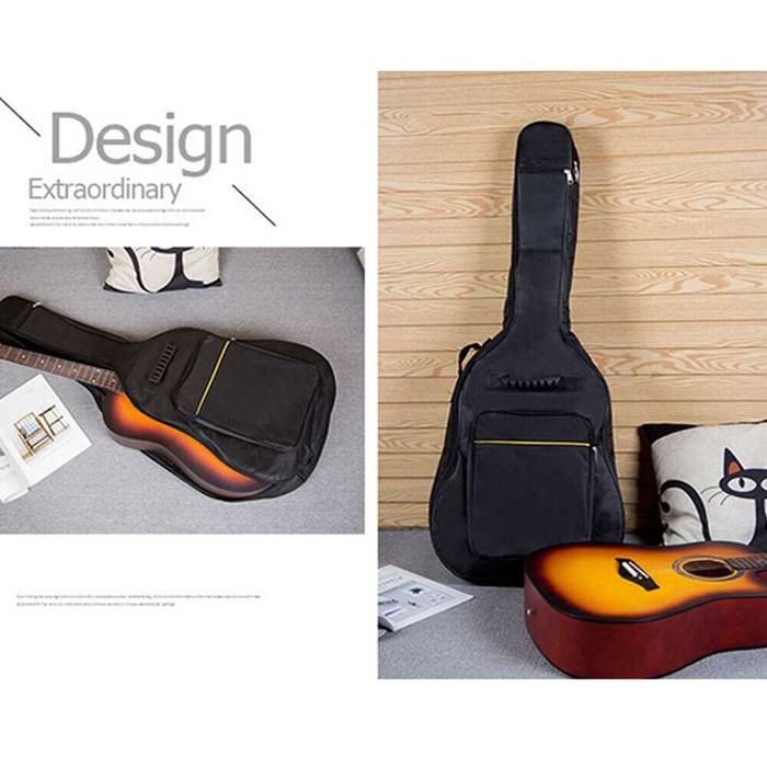 | Tahan Air: Material Oxford 600D yang rapat dan berkerapatan tinggi memberikan ketahanan terhadap cipratan air dan kelembapan, menjaga gitar tetap kering. | Kesesuaian: Gitar Akustik 40-41 inci |