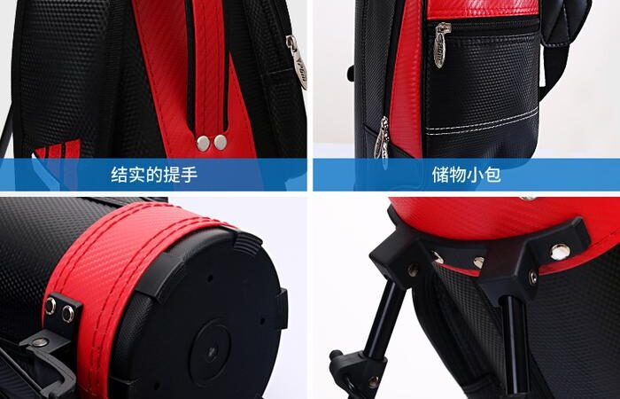 - Driving Stand Bag: Tas golf yang dilengkapi dengan kaki (stand) yang dapat dibuka, sehingga tas dapat berdiri sendiri tanpa harus bersandar pada benda lain. Sangat praktis di driving range atau lapangan.