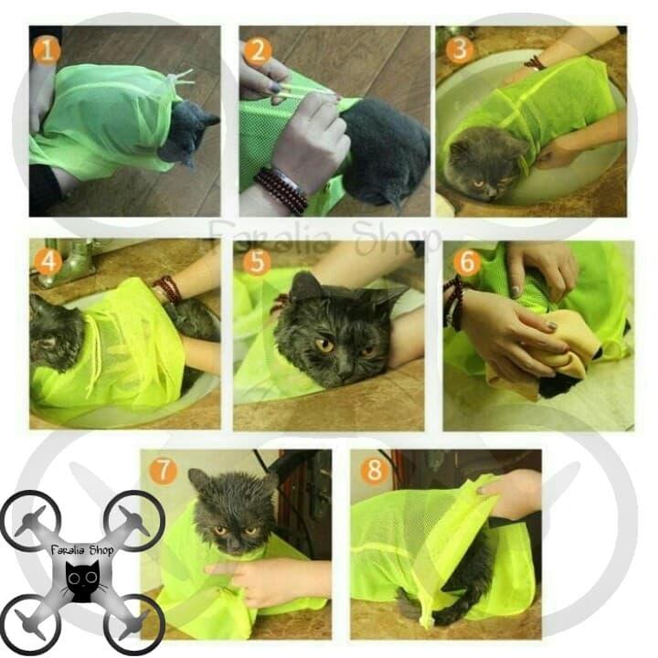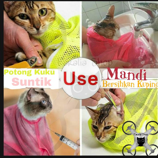 | Desain Nyaman | Bahan halus dan jaring bernapas, menjaga kucing tetap nyaman selama perawatan. |