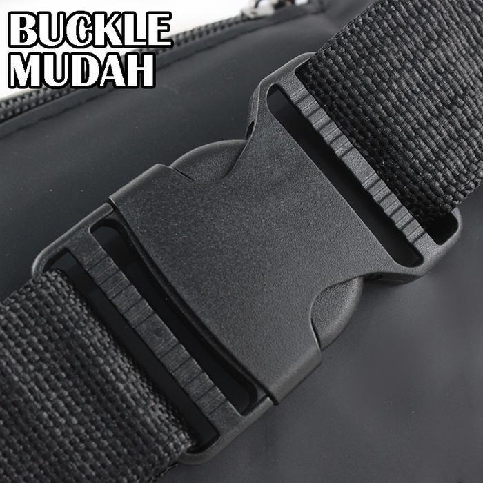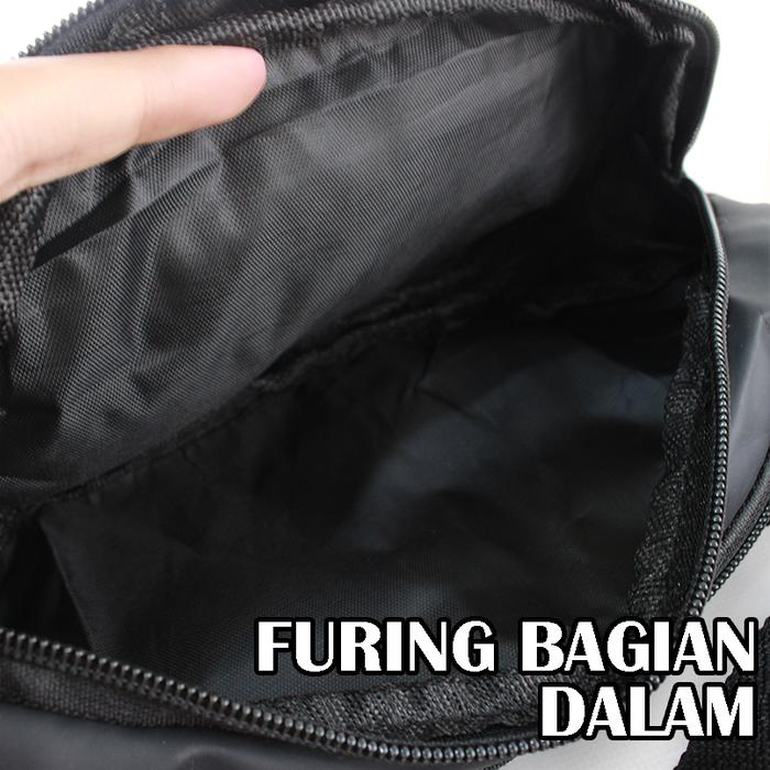 Dengan dimensi 36x16x5 cm, tas ini memiliki ruang penyimpanan yang luas dan terorganisir dengan baik. Dilengkapi dengan 4 resleting, termasuk 1 kompartemen utama, 2 saku depan, dan 1 saku belakang untuk menyimpan barang dengan aman dan mudah diakses. Tali yang dapat disesuaikan panjangnya memastikan kenyamanan baik saat digunakan sebagai waistbag maupun slingbag.