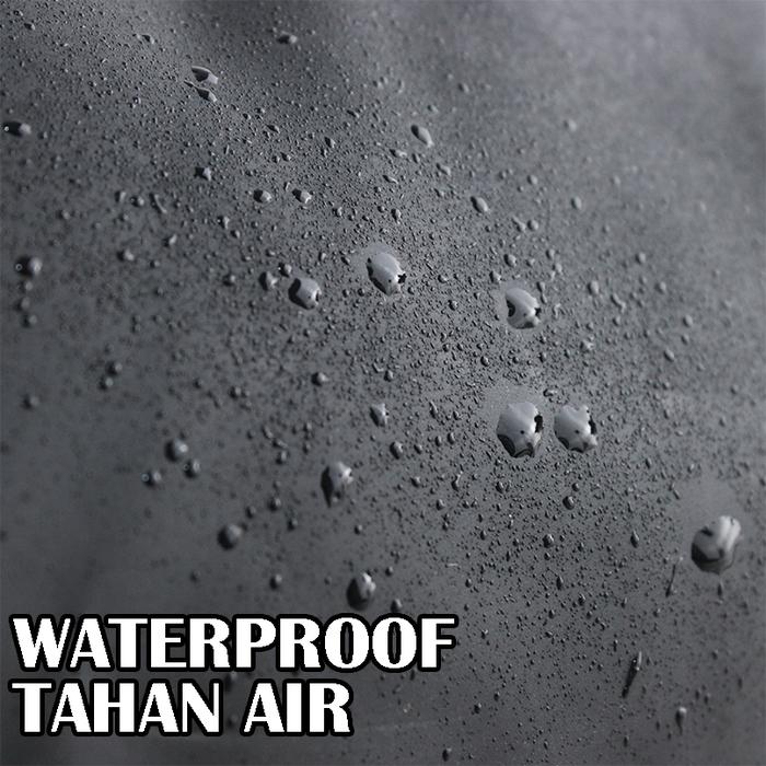 - Waterproof: Sifat bahan yang kedap air, mampu menahan penetrasi air sehingga melindungi barang di dalam tas dari basah.