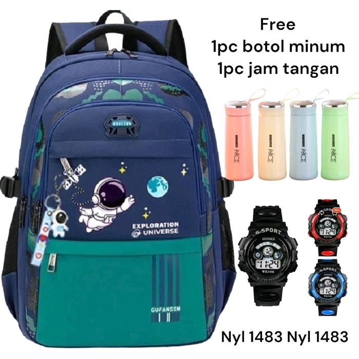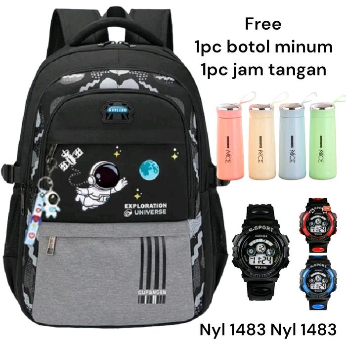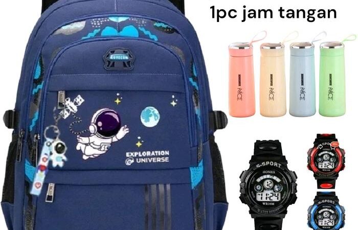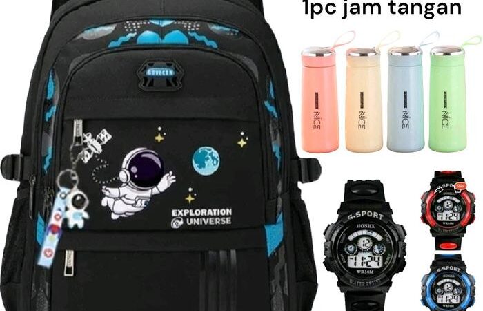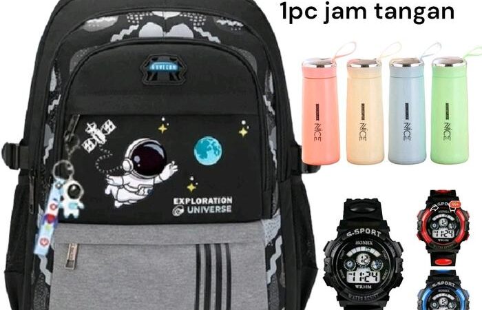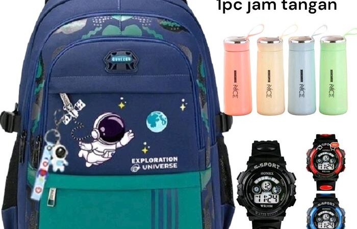 | Paket 3in1 Unik | Tas ransel, botol minum, dan jam tangan (warna botol acak). |