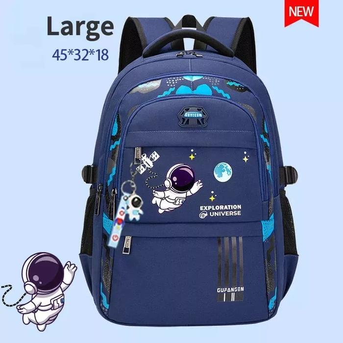 Tas ransel ini didesain khusus untuk mendukung aktivitas sekolah yang menyenangkan. Memiliki motif astronot yang keren dan futuristik, tas ini terbuat dari bahan Kanvas Poliester D300 yang sangat kuat dan tahan lama. Bagian dalamnya dilapisi penuh dengan material Satin halus untuk melindungi buku dan perlengkapan sekolah lainnya.