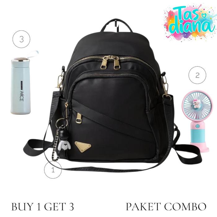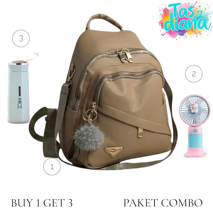 | Fitur Utama | – Desain multifungsi: bisa digunakan sebagai ransel atau tas selempang bahu. – Tali adjustable (dapat diatur panjangnya) dengan material tebal anti putus. – Saku dalam dilapisi furing satin tebal untuk perlindungan barang. – Kapasitas luas + saku tambahan untuk organisasi optimal. |