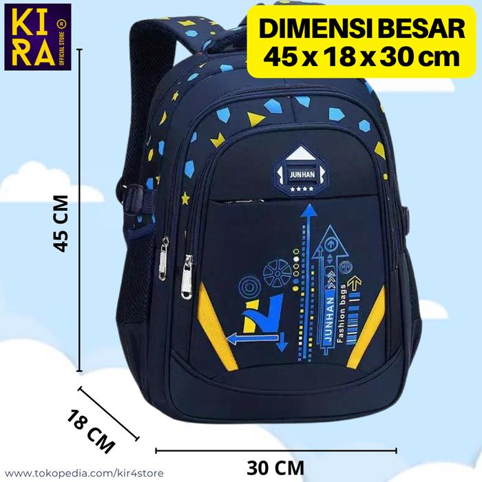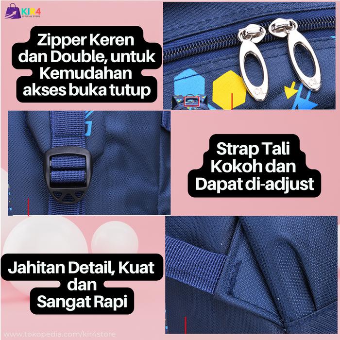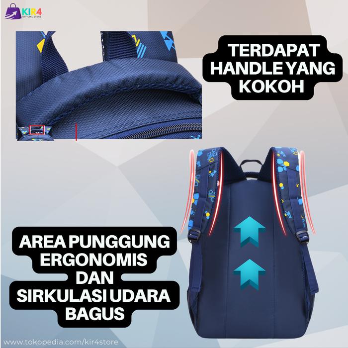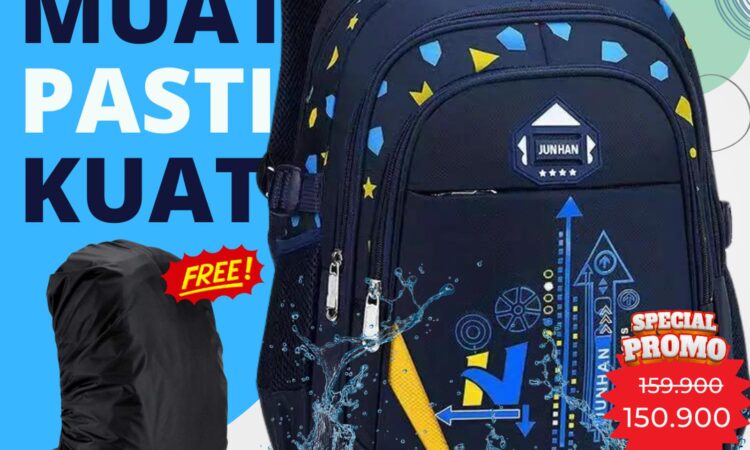 Tas ransel ini dirancang khusus untuk menemani aktivitas sekolah buah hati Anda. Terbuat dari material Nylon berkualitas tinggi yang dilapisi finishing tahan air (waterproof), sehingga sangat ideal untuk melindungi buku dan peralatan elektronik dari hujan atau tumpahan air. Dimensinya yang besar dan ergonomis pas untuk anak sekolah dasar, dengan banyak kompartemen yang memudahkan mereka mengorganisir buku, botol minum, dan perlengkapan sekolah lainnya.