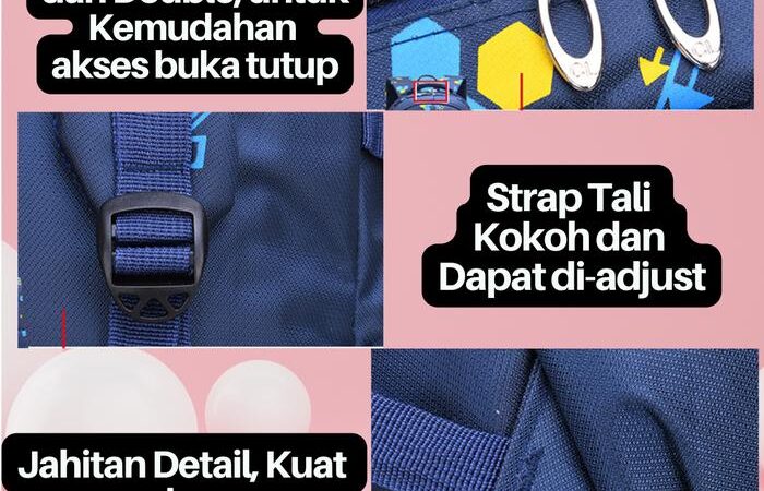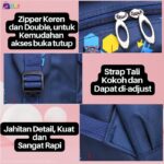 | Banyak Kompartemen | Dilengkapi dengan multiple compartment untuk memisahkan laptop, buku, alat tulis, dan botol minum. |