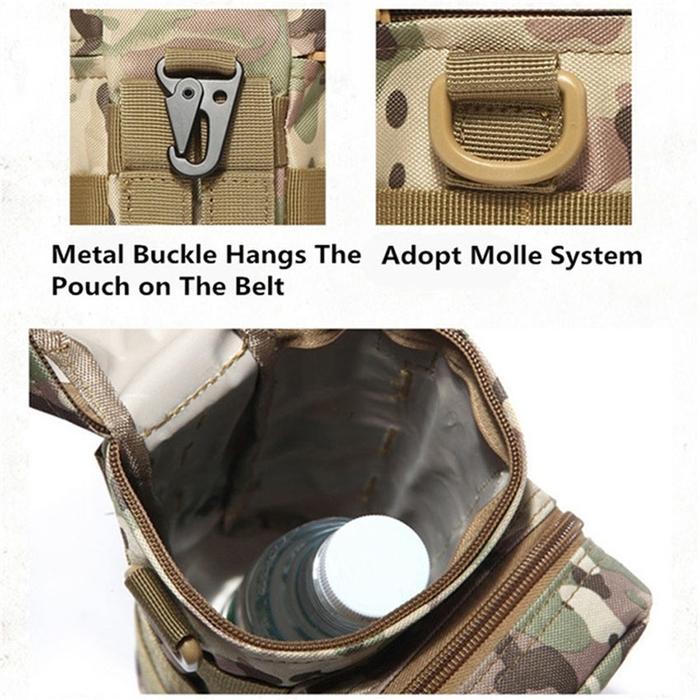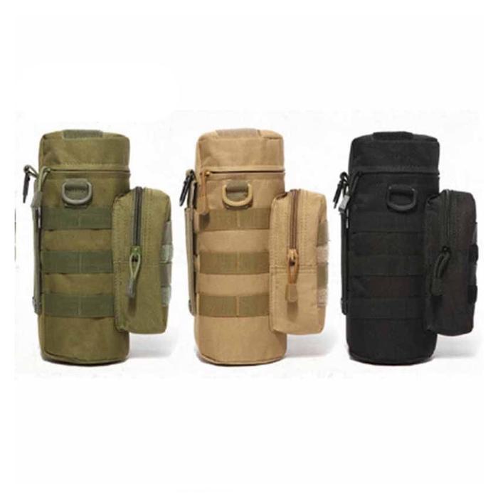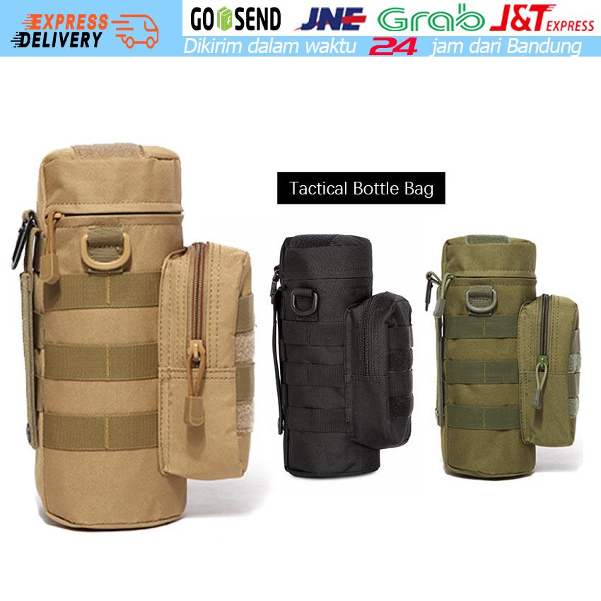 | Fitur Utama | – Material nylon tahan air – Desain tactical dengan tali adjustable – Muat botol berbagai ukuran – Kantong tambahan untuk dompet, ponsel, kunci, dll |