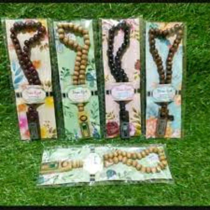 Tasbih kayu ini adalah cenderamata pernikahan yang elegan dan penuh makna. Setiap tasbih terbuat dari kayu pilihan dengan butiran berdiameter 8mm, memberikan kesan kokoh dan nyaman di genggaman. Dikemas secara eksklusif dalam plastik bening dan ditempatkan di atas kertas alas bergaya shabby, membuatnya terlihat sangat istimewa.
