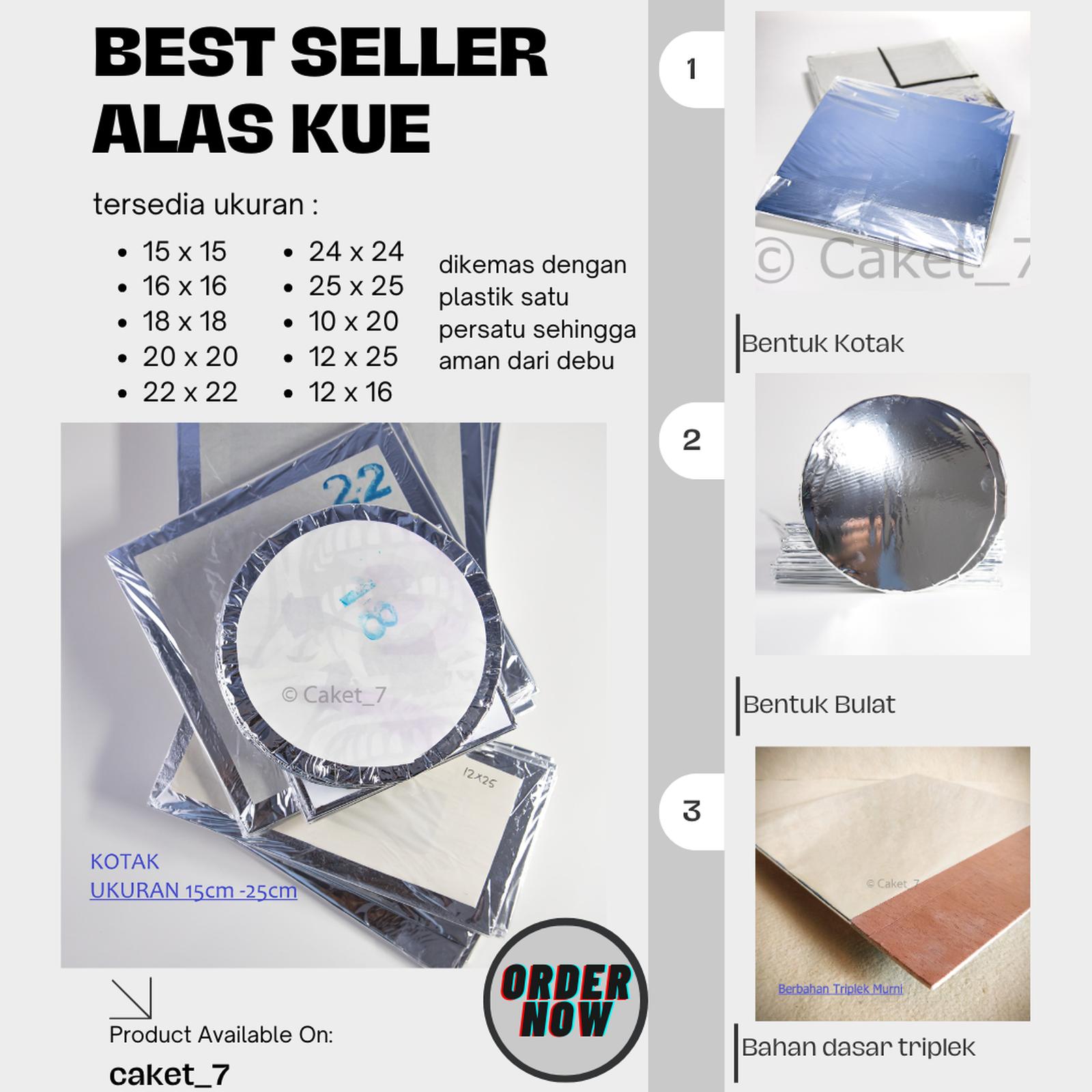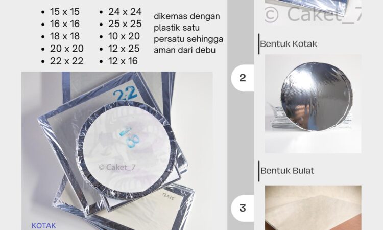Tersedia dalam bentuk bulat dan persegi, tatakan kue ini terbuat dari triplek berkualitas tinggi dengan ketebalan 2 mm, menjadikannya sangat kokoh dan tahan lama. Dapatkan alas kue yang tidak hanya memperkuat struktur kue tart Anda tetapi juga memberikan tampilan yang lebih rapi dan menarik.