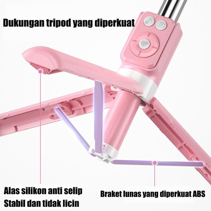 Tingkatkan kualitas konten vlog dan foto selfie Anda dengan tongsis serbaguna ini! Dirancang untuk memberikan stabilitas maksimal dan fleksibilitas penuh, alat ini merupakan gabungan sempurna dari tongkat selfie, tripod, dan monopod berkualitas tinggi.